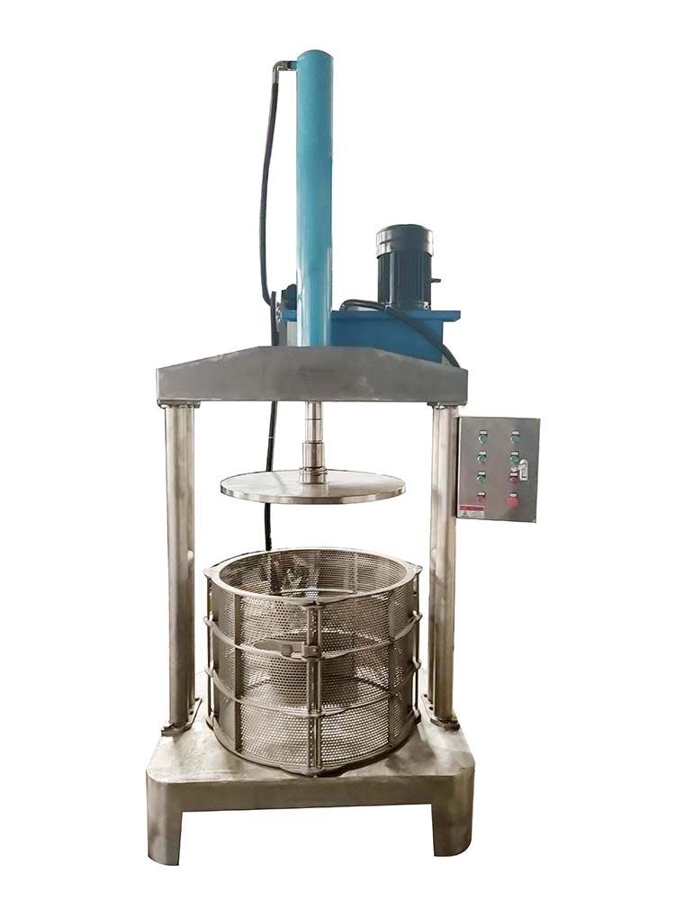 將解凍好的魷魚(yú)放入擠水機(jī)料斗內(nèi),擠水機(jī)液壓缸自動(dòng)下壓,將魷魚(yú)體內(nèi)多余的水分?jǐn)D出,以便于調(diào)味吃料充分,使烘烤后的魷魚(yú)絲味道更鮮美,口感綿柔不粘牙。