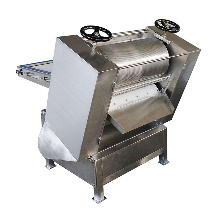 魷魚疏松機用于把烘烤后的魷魚進行壓延和纖維疏松。經過疏松機加工過的魷魚組織疏松,吃起來口感綿柔,不粘牙齒,再經過一道拉絲加工后就可得到美味綿柔的魷魚絲。