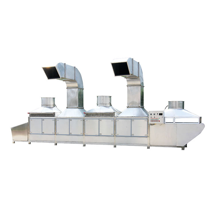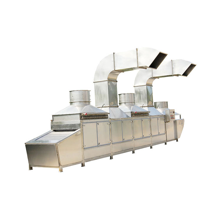 將物料放置在烘干機(jī)的網(wǎng)帶上,物料沿著隧道通道向前移動。熱空氣通過頂部數(shù)臺軸流風(fēng)機(jī)和渦流風(fēng)機(jī)作用下進(jìn)行循環(huán),后排出低溫高濕度的空氣,平穩(wěn)高效地完成整個干燥過程。進(jìn)料和出料在隧道兩端進(jìn)行,主要用于海產(chǎn)品、果品、蔬菜等農(nóng)副產(chǎn)品、中藥材、寵物食品等的烘干,因采用空氣對流循環(huán)方式,對產(chǎn)品絕對無污染,完全符合食品衛(wèi)生標(biāo)準(zhǔn)??諝饪裳h(huán)利用,干燥效率顯著提高。